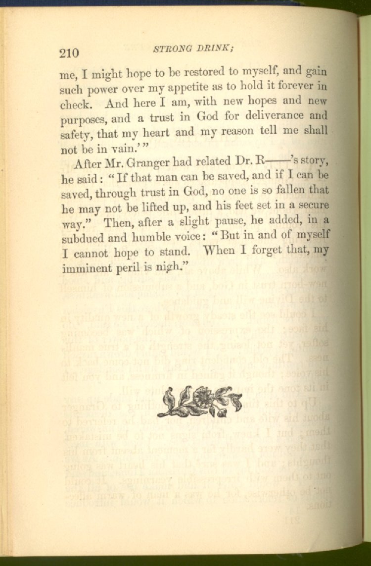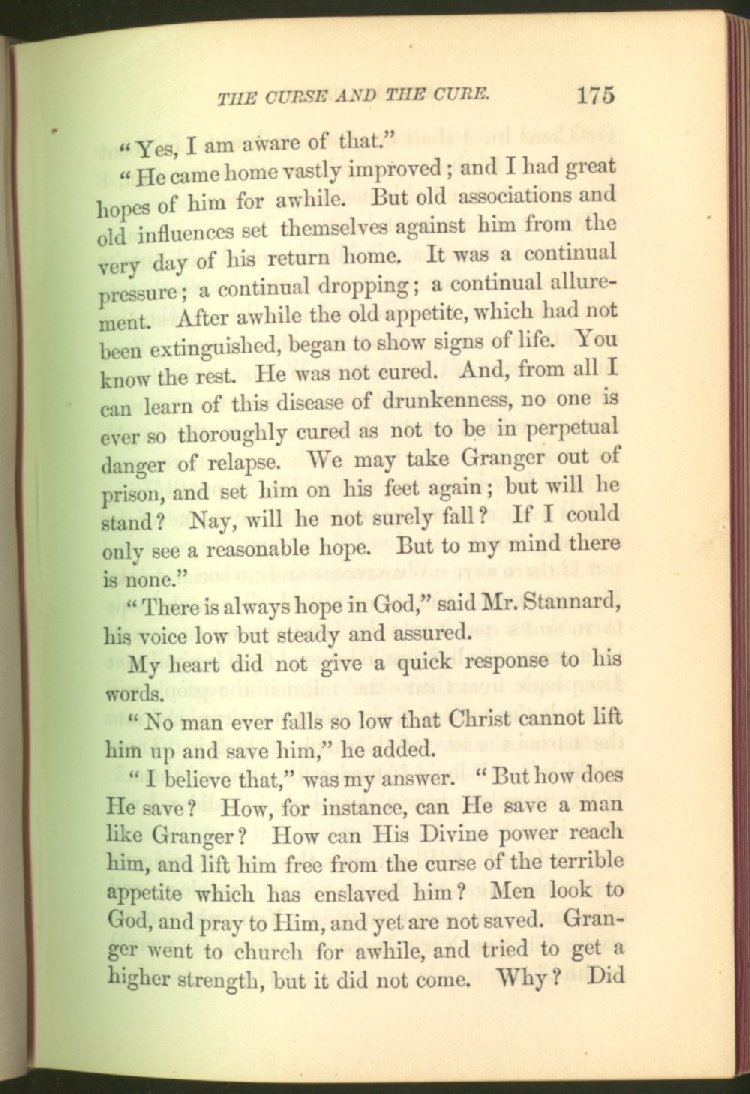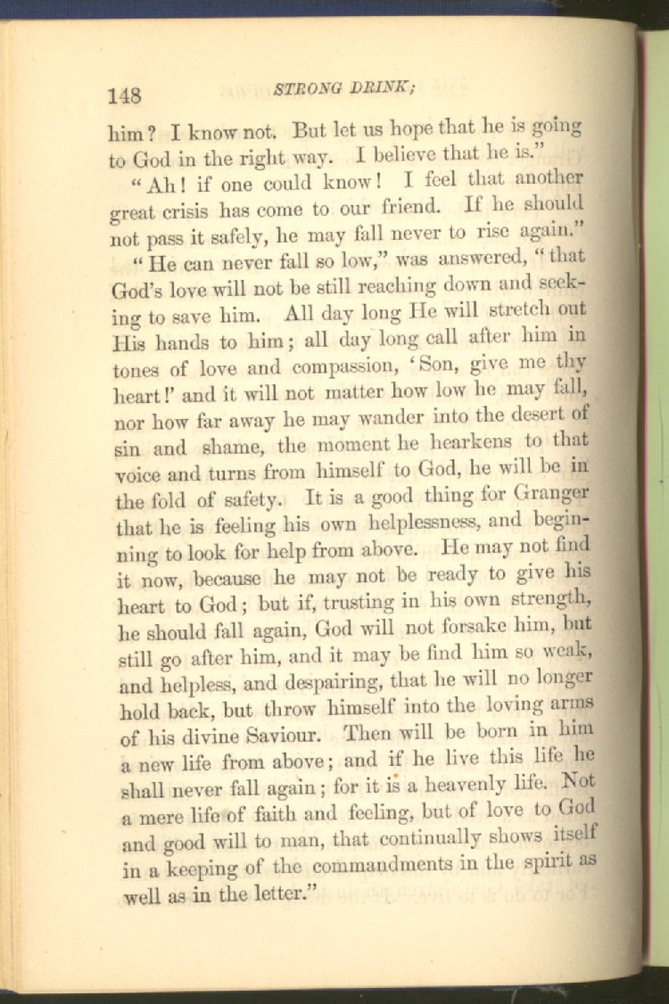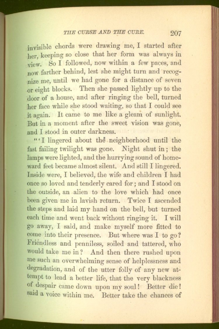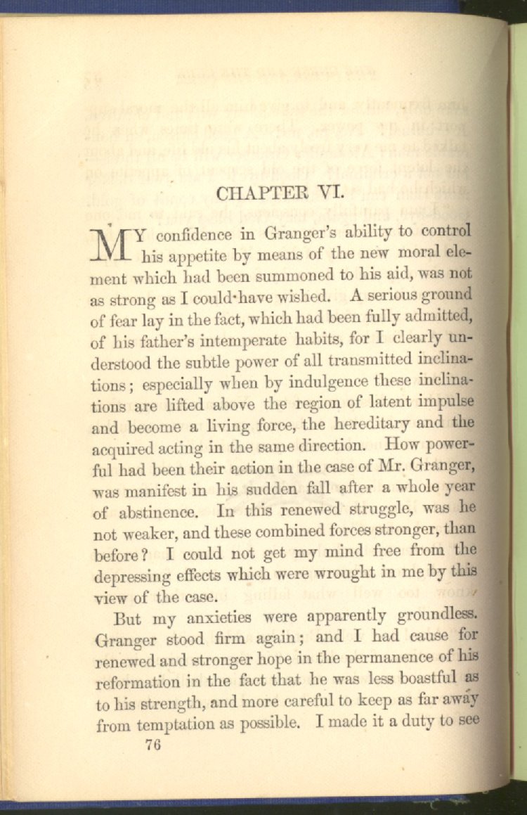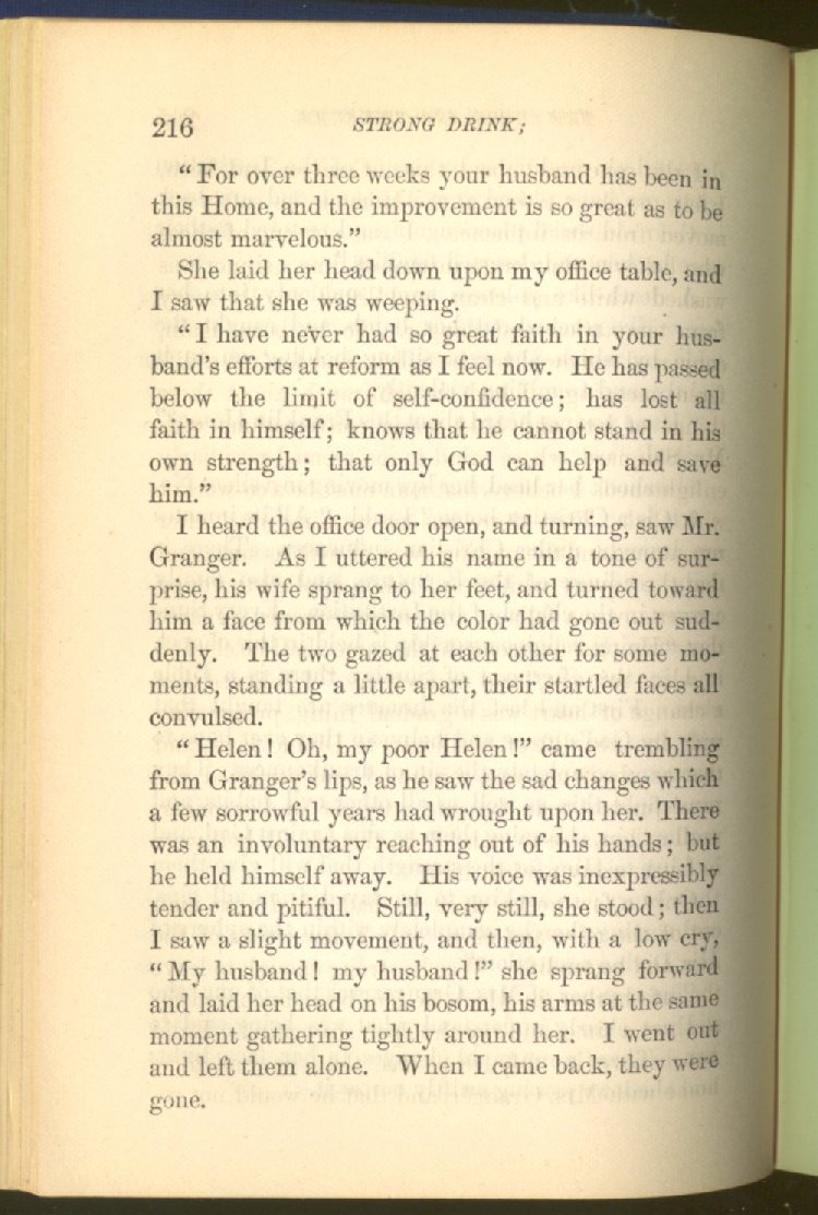 of this important work we have one of those intensely wrought temperance stories for which the author is so distinguished. In the conception and execution of this story, he has taken higher ground than usual, and lifted the subject of temperance into the region of spiritual laws and forces. Rarely has the insidious growth and overmastering power of appetite, or the desperate and prolonged struggle of an enslaved man for freedom, been more powerfully exhibited than in the hero of this story--a man of education, social standing, high honor and the tenderest home affections. We follow him in his downward course, step by step, with an almost breathless interest and suspense--glad and hopeful for every new effort that he makes to overcome his pitiless enemy, and disappointed and sorrowful at each successive failure--until manhood is eclipsed, love extinguished and honor a thing of the past; and we turn away from him at the prison door, our hope as dead as his own. But the man is not lost. No; there is O