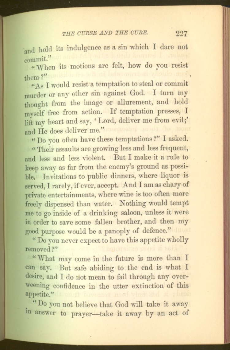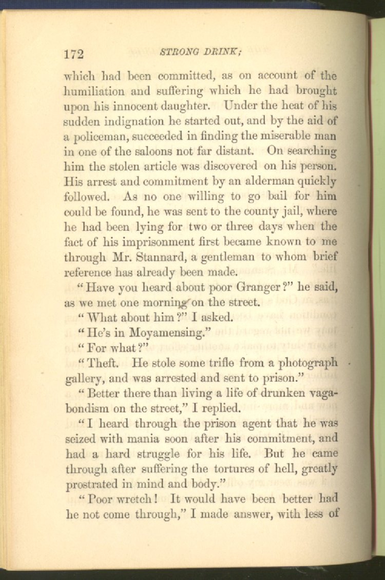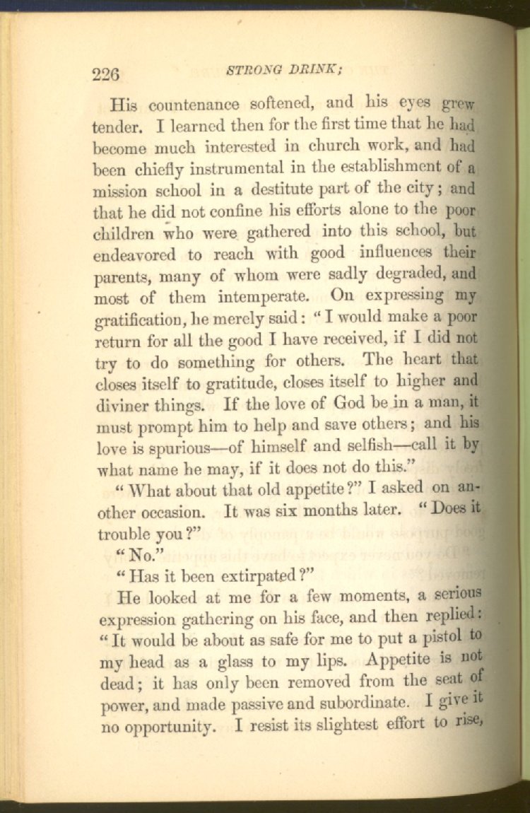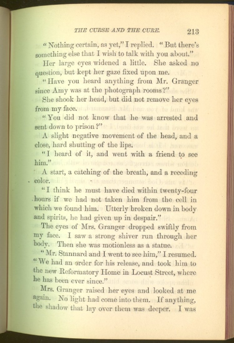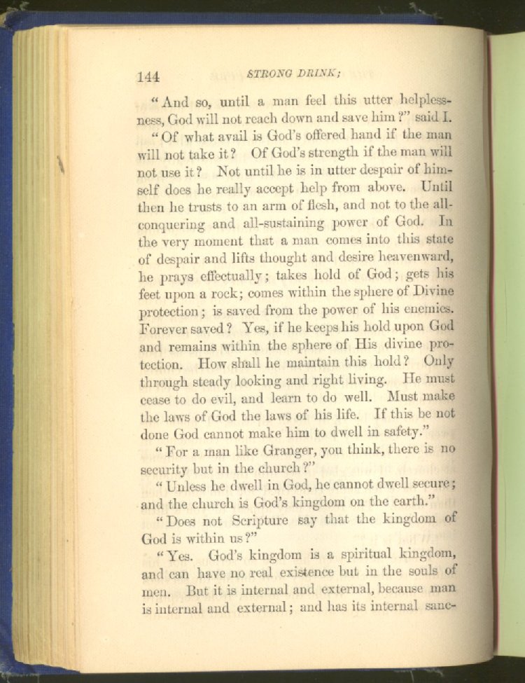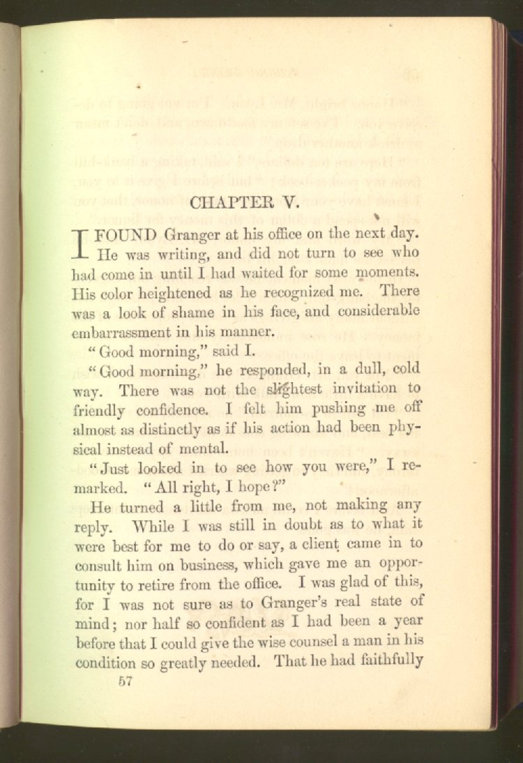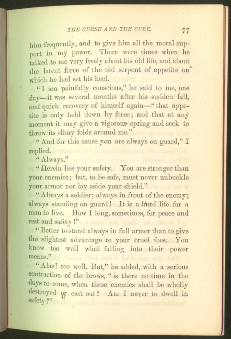 of this important work we have one of those intensely wrought temperance stories for which the author is so distinguished. In the conception and execution of this story, he has taken higher ground than usual, and lifted the subject of temperance into the region of spiritual laws and forces. Rarely has the insidious growth and overmastering power of appetite, or the desperate and prolonged struggle of an enslaved man for freedom, been more powerfully exhibited than in the hero of this story--a man of education, social standing, high honor and the tenderest home affections. We follow him in his downward course, step by step, with an almost breathless interest and suspense--glad and hopeful for every new effort that he makes to overcome his pitiless enemy, and disappointed and sorrowful at each successive failure--until manhood is eclipsed, love extinguished and honor a thing of the past; and we turn away from him at the prison door, our hope as dead as his own. But the man is not lost. No; there is O