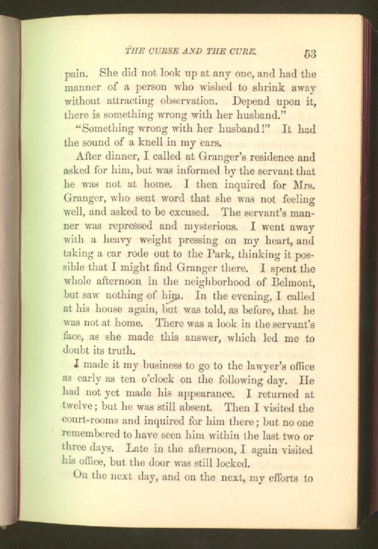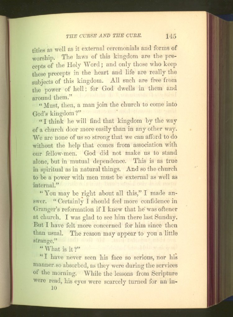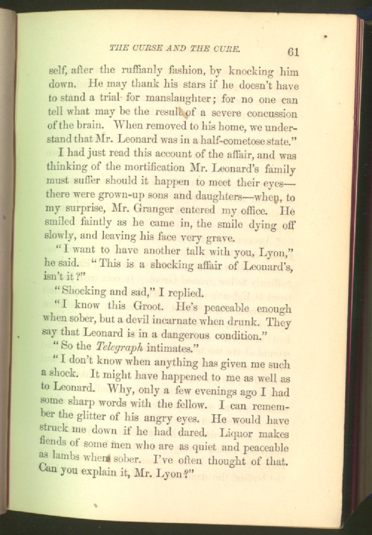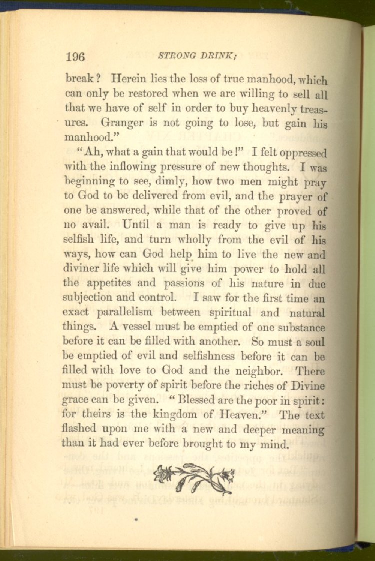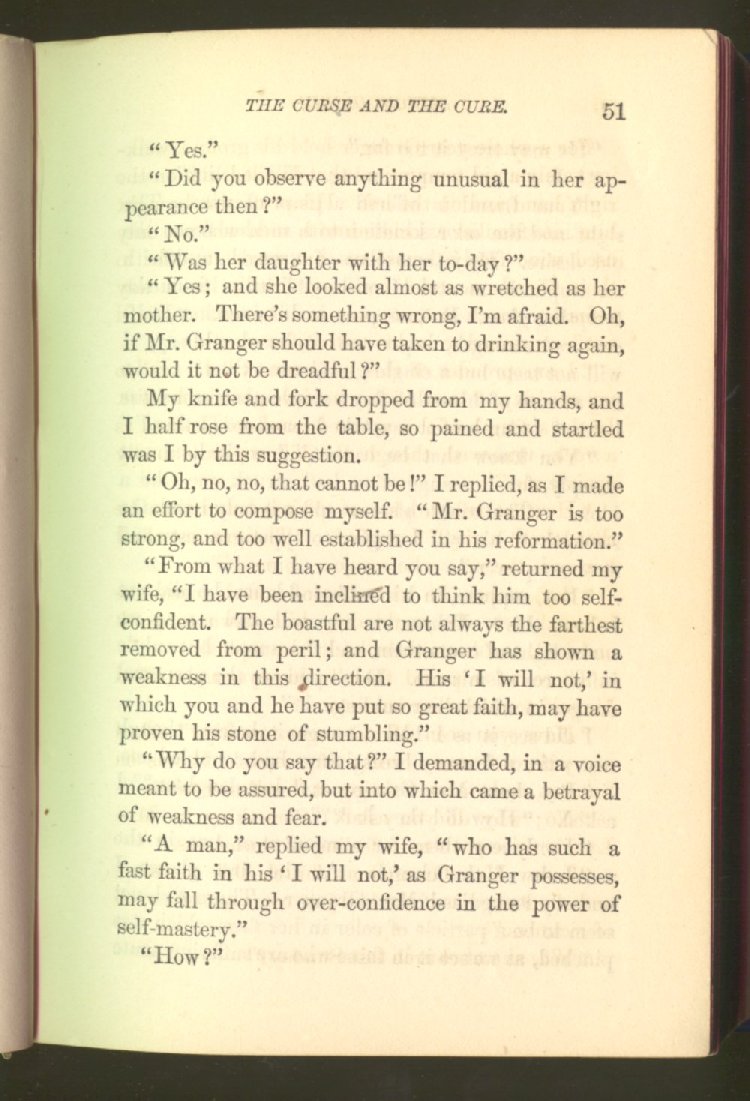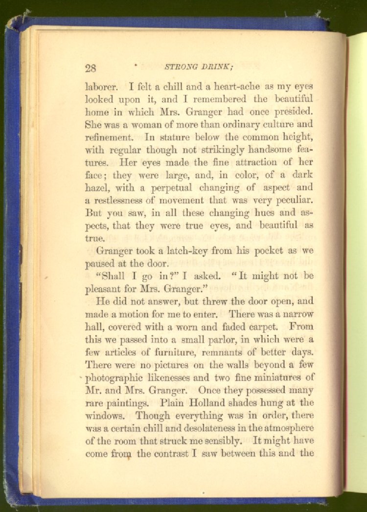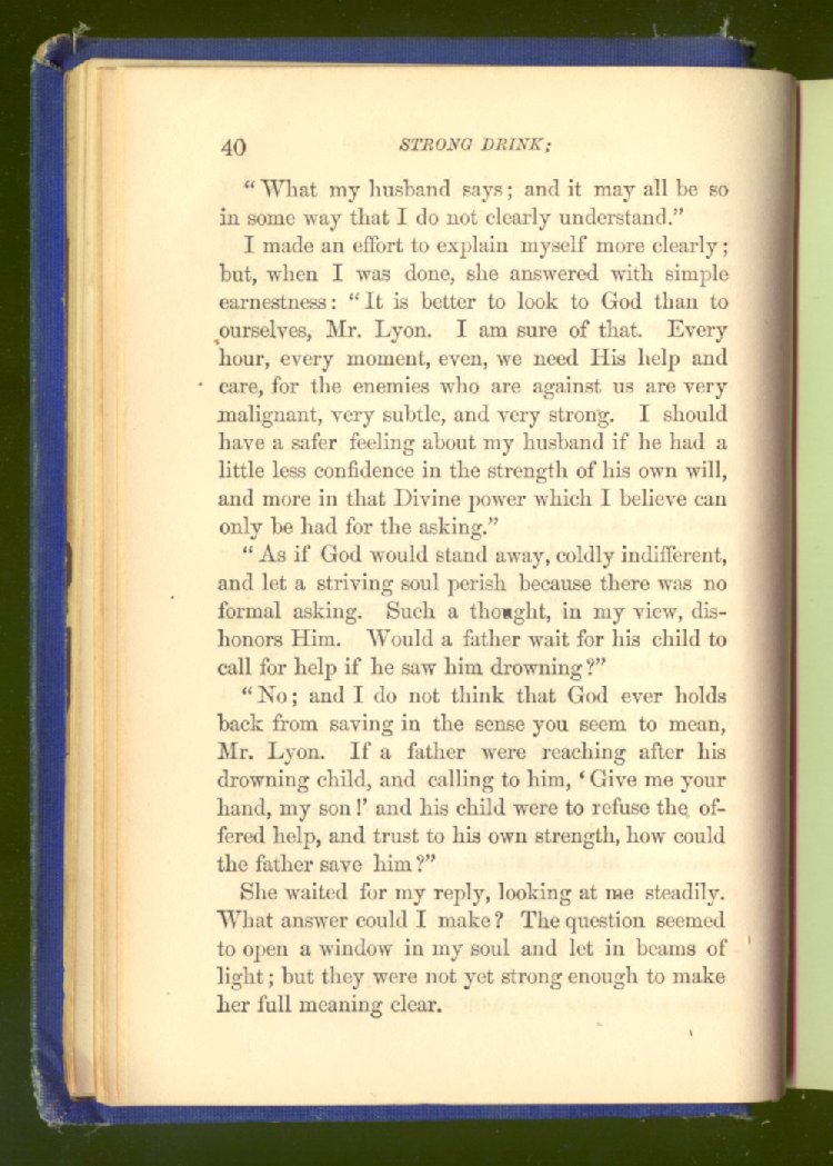 of this important work we have one of those intensely wrought temperance stories for which the author is so distinguished. In the conception and execution of this story, he has taken higher ground than usual, and lifted the subject of temperance into the region of spiritual laws and forces. Rarely has the insidious growth and overmastering power of appetite, or the desperate and prolonged struggle of an enslaved man for freedom, been more powerfully exhibited than in the hero of this story--a man of education, social standing, high honor and the tenderest home affections. We follow him in his downward course, step by step, with an almost breathless interest and suspense--glad and hopeful for every new effort that he makes to overcome his pitiless enemy, and disappointed and sorrowful at each successive failure--until manhood is eclipsed, love extinguished and honor a thing of the past; and we turn away from him at the prison door, our hope as dead as his own. But the man is not lost. No; there is O