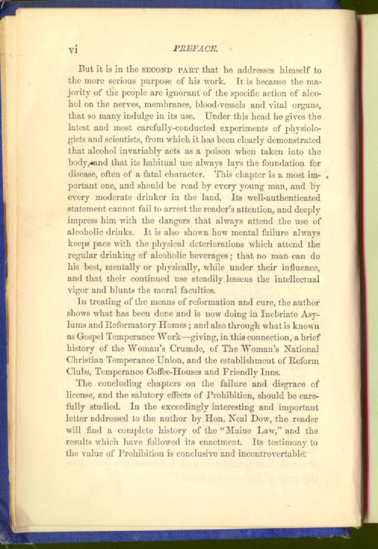 The concluding chapters on the failure and disgrace of license, and the salutory effects of Prohibition, should be carefully studied. In the exceedingly interesting and important letter addressed to the author by Hon. Neal Dow, the reader will find a complete history of the "Maine Law," and the results which have followed its enactment. Its testimony to the value of Prohibition is conclusive and incontrovertable.