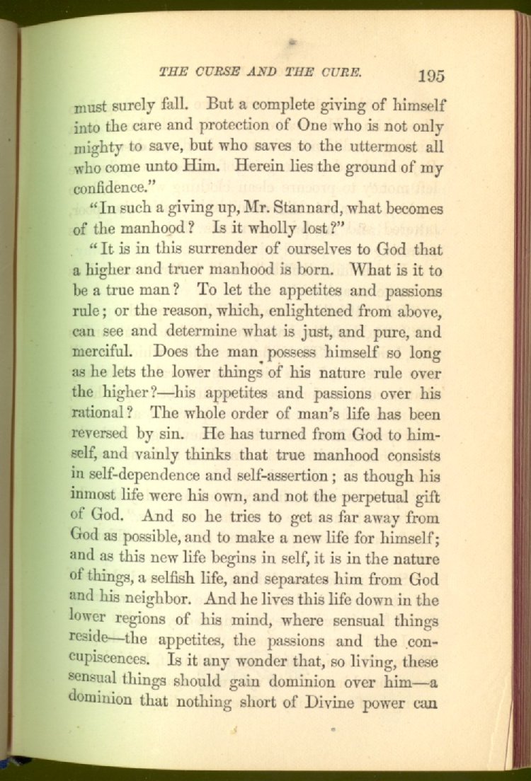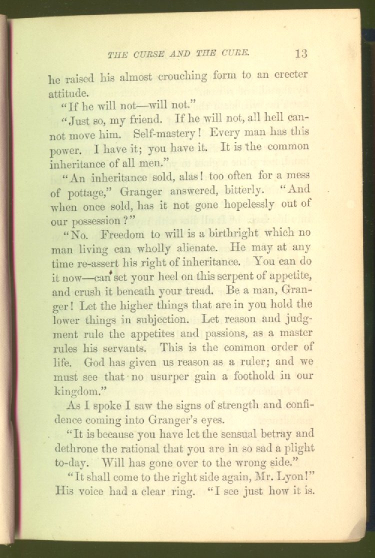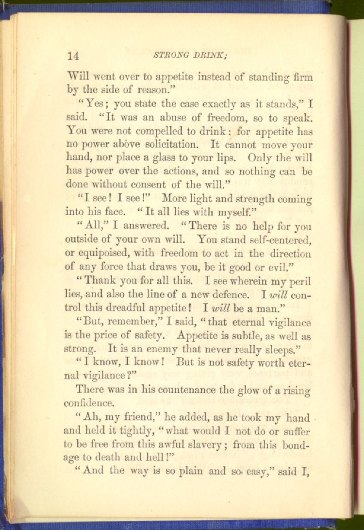 "But the will-power is above them all--can break the bonds of appetite, and let the man go free."
