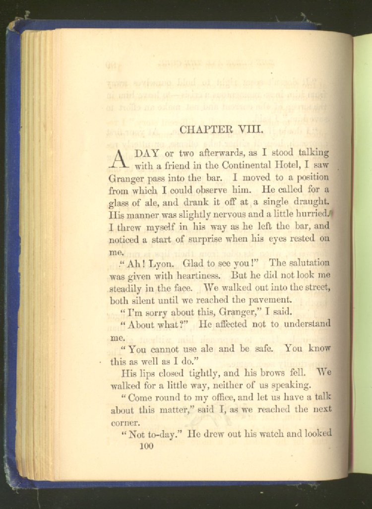 "Have fallen so low?" he said, in a husky, shaking voice, finishing the sentence which I had left incomplete. Then, with a steadier utterance: "But it is all too sadly true, Mr. Lyon. The devil of drink has seized me, and I cannot get free from the grip of his terrible hand!"