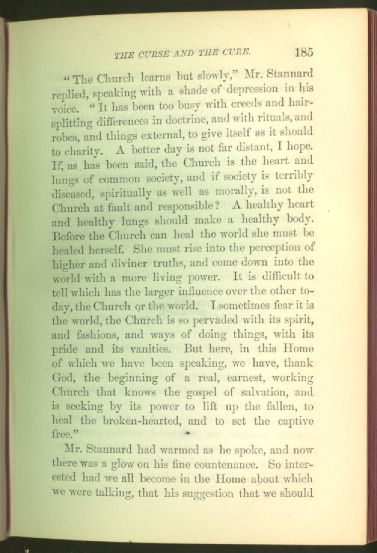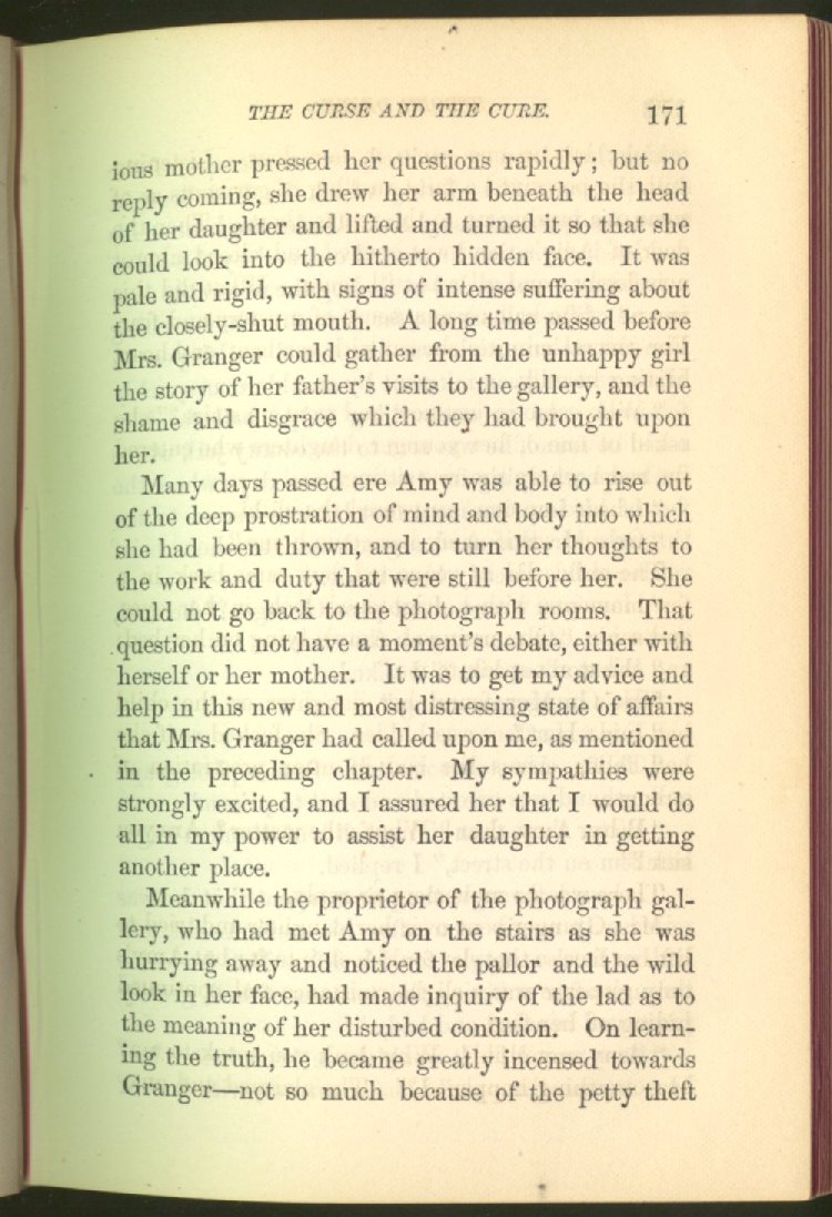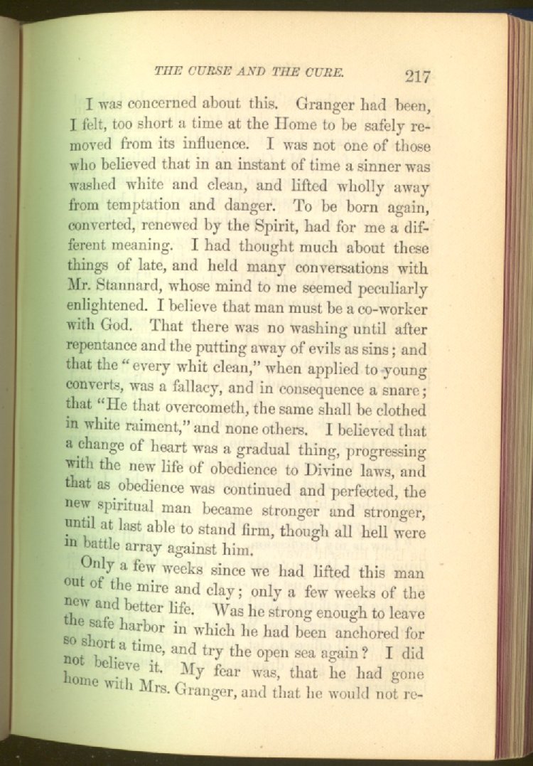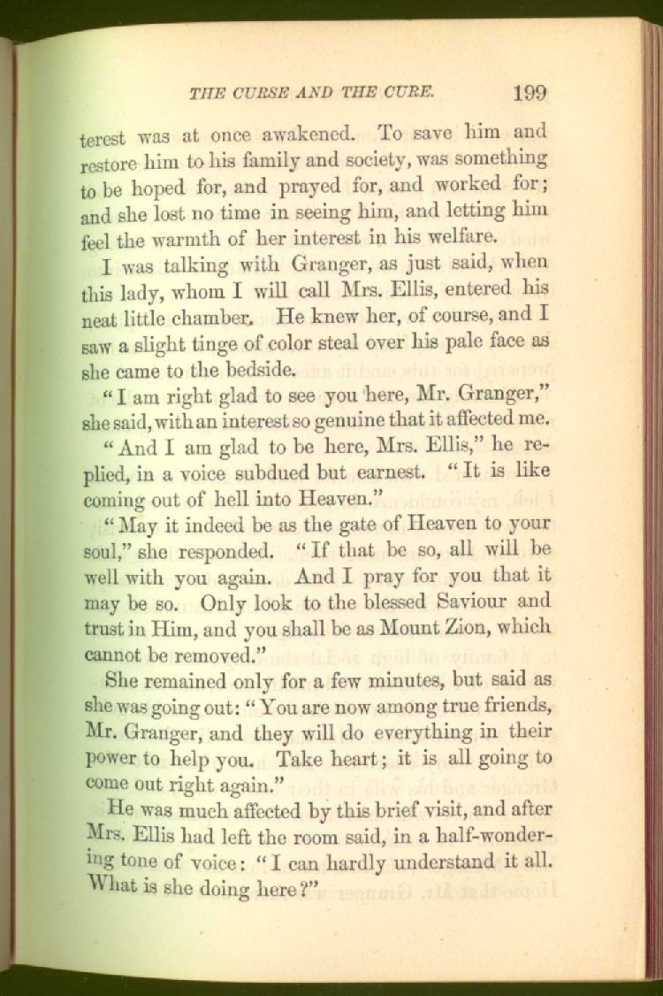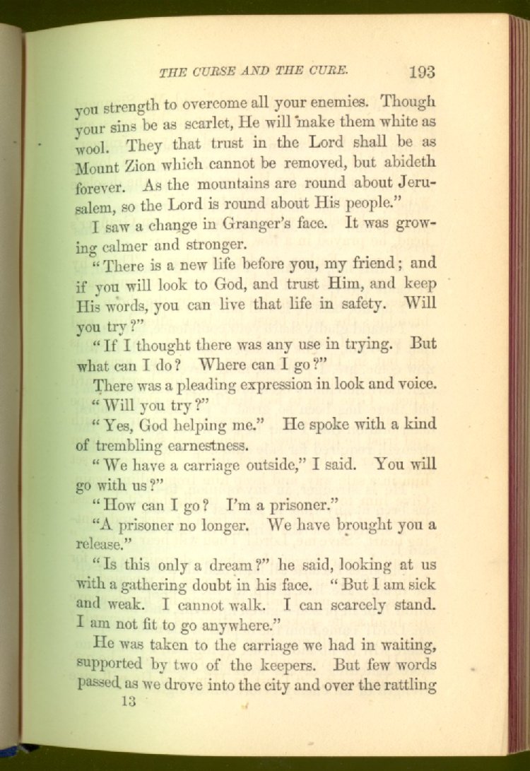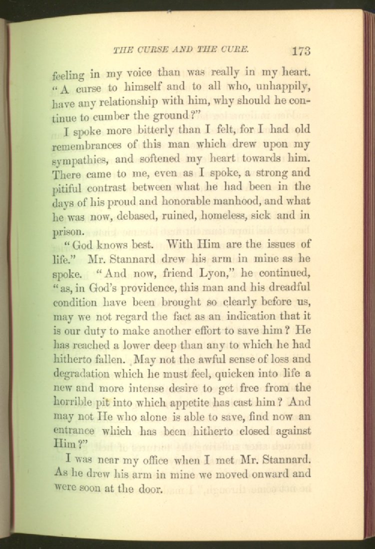 who can save to the uttermost all who come unto Him. And by Him this man is saved, and made a power for good in the salvation of many who had once been in the same fearful bondage from which, in the name and by the power of God, he had been able to get free. Can any one who reads what befell this man in the cell where society had shut him away as a foul and guilty thing, caring little whether he lived or died, do so with dry eyes? We think not. It is something to stir the heart profoundly. In this story, the author deals not alone with the curse of strong drink, but with the means of cure, and shows that even with the lowest and the vilest, reform is possible.