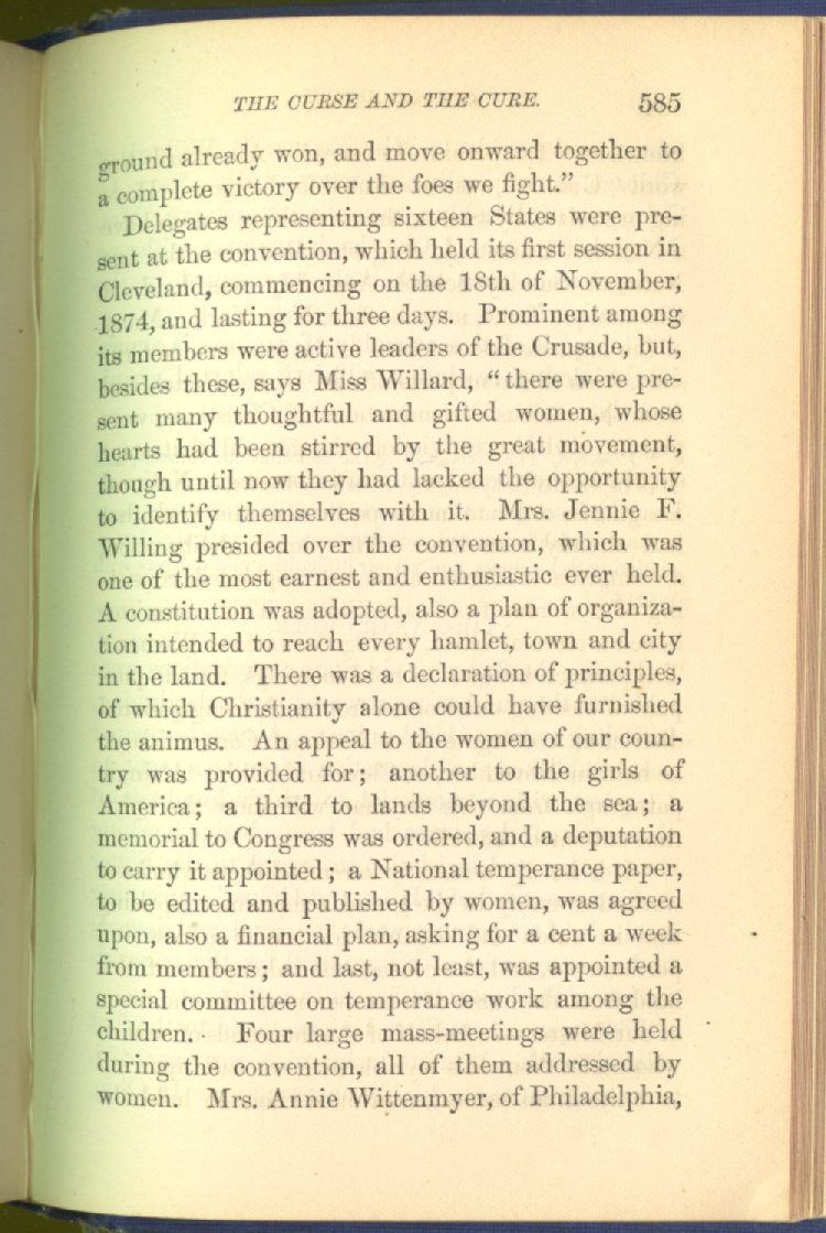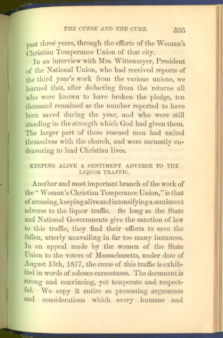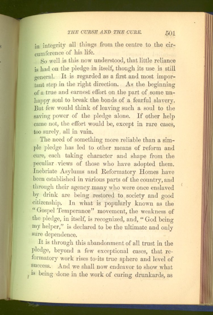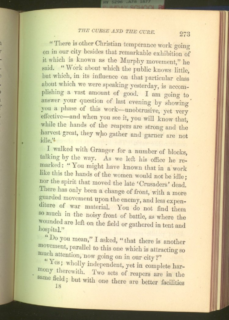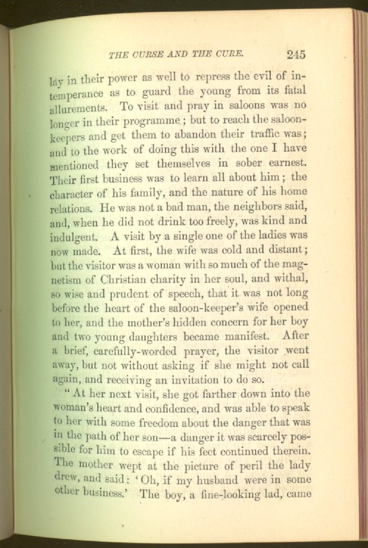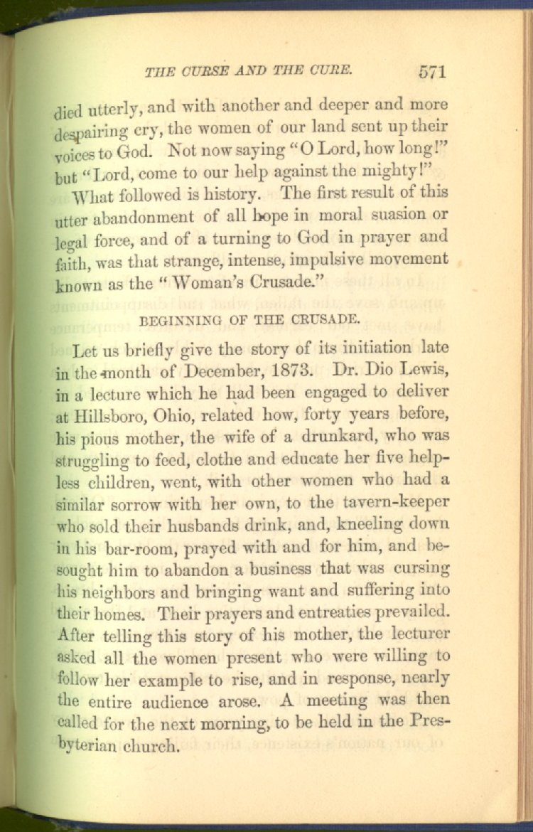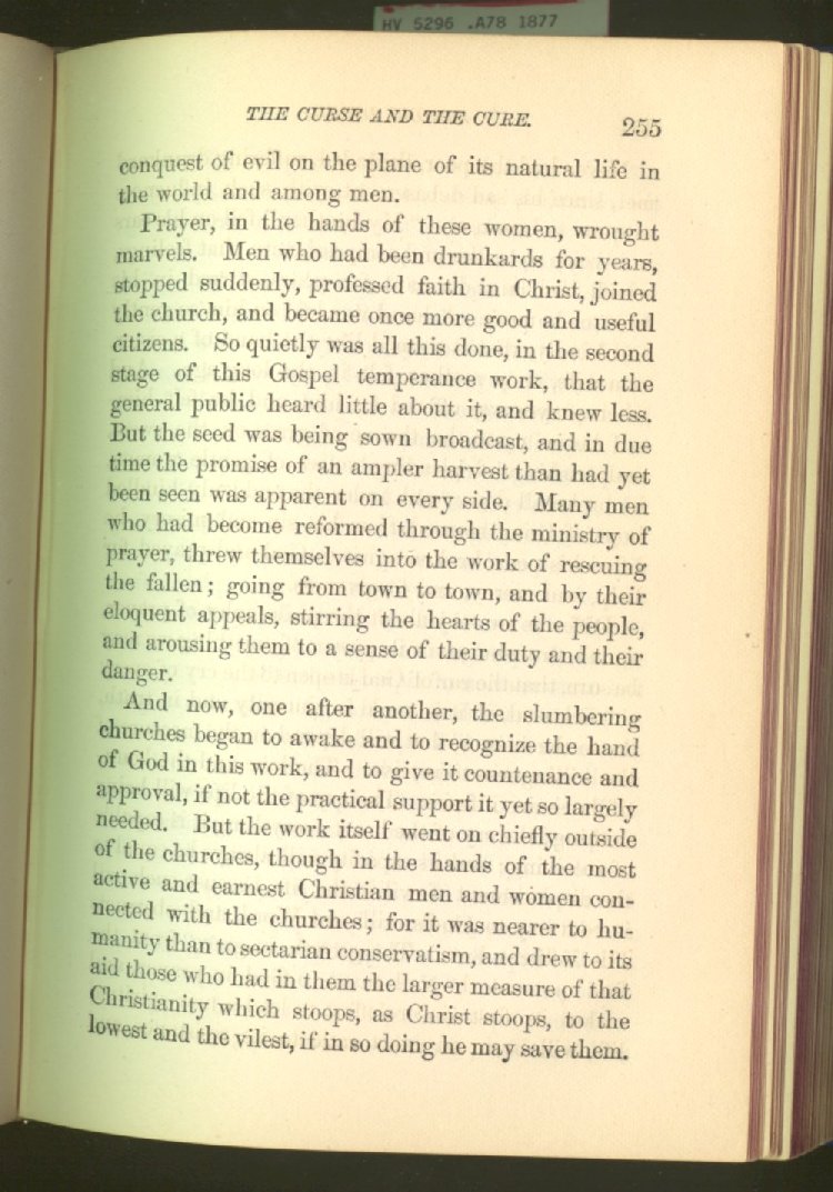 In treating of the means of reformation and cure, the author shows what has been done and is now doing in Inebriate Asylums and Reformatory Homes; and also through what is known as Gospel Temperance Work--giving, in this connection, a brief history of the Woman's Crusade, of The Woman's National Christian Temperance Union, and the establishment of Reform Clubs, Temperance Coffee-Houses and Friendly Inns.