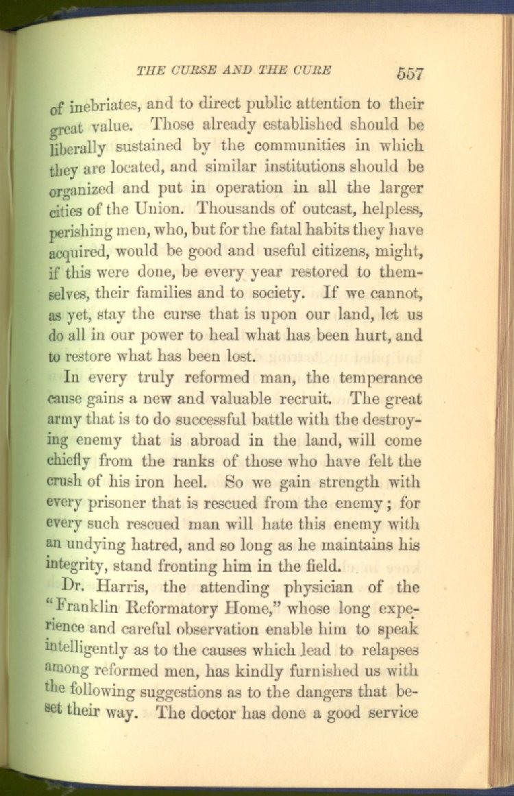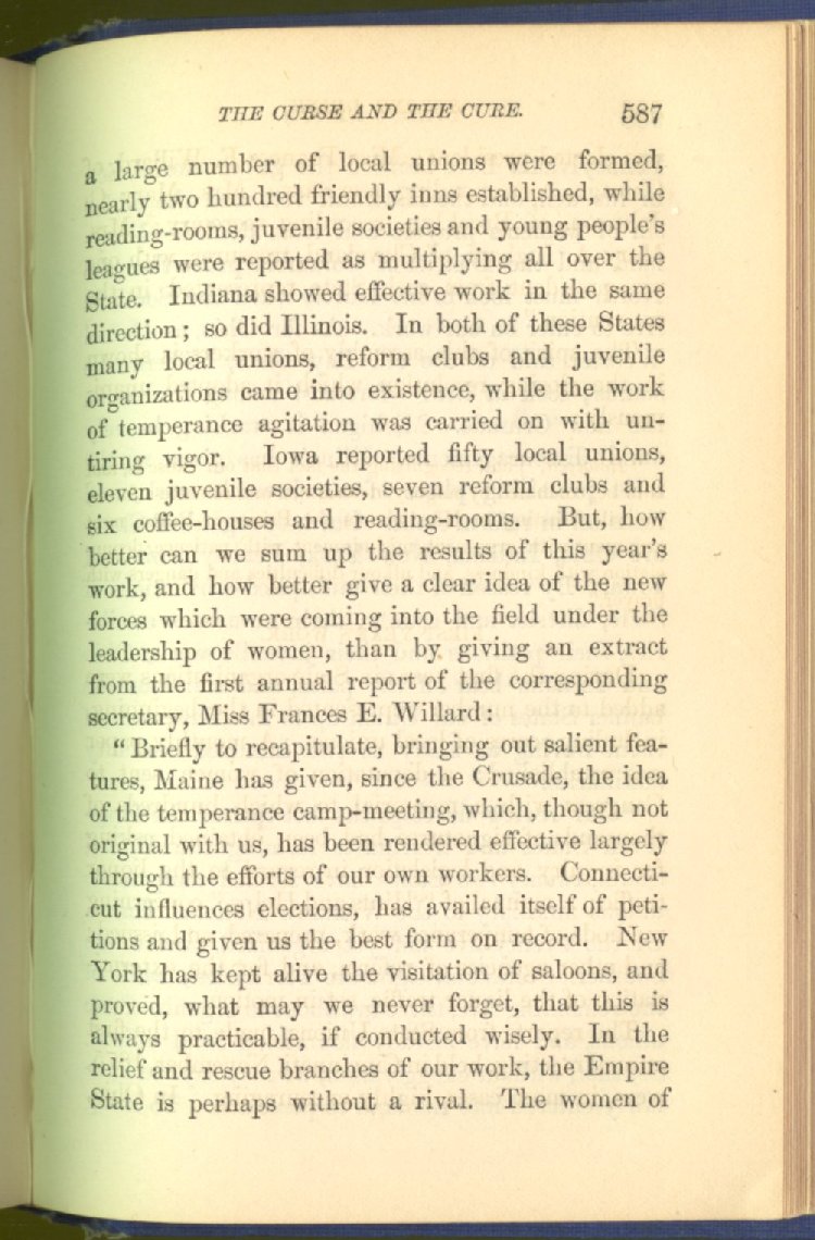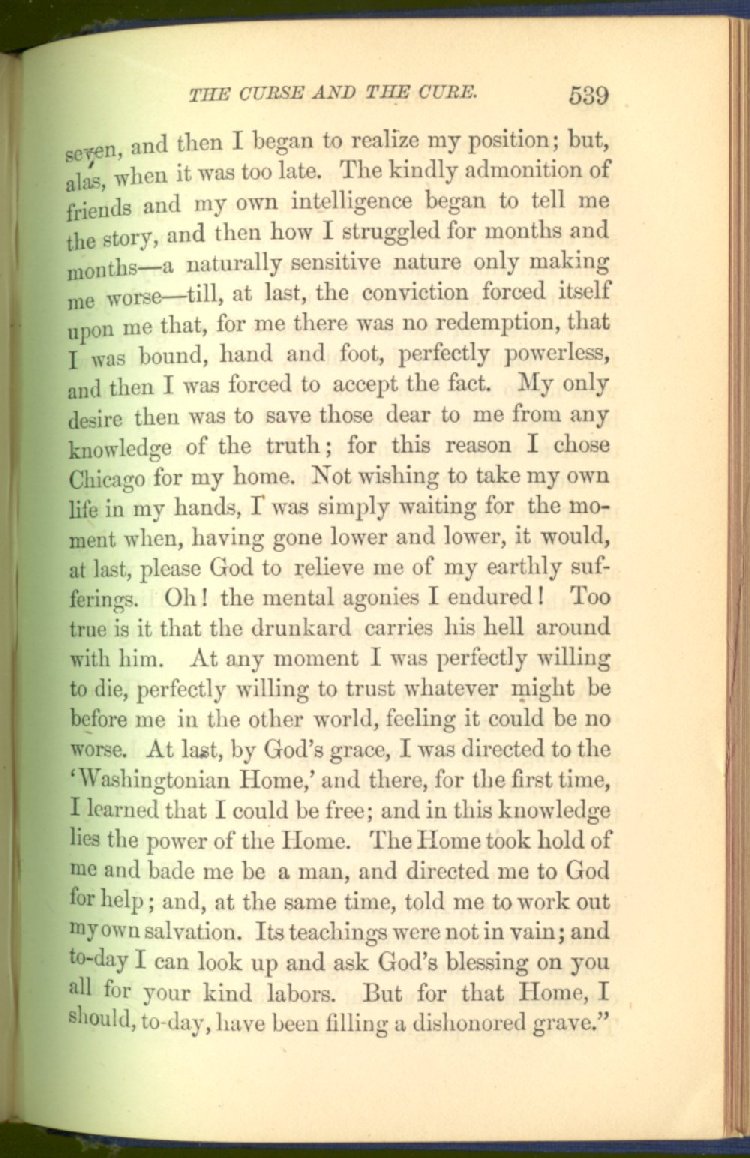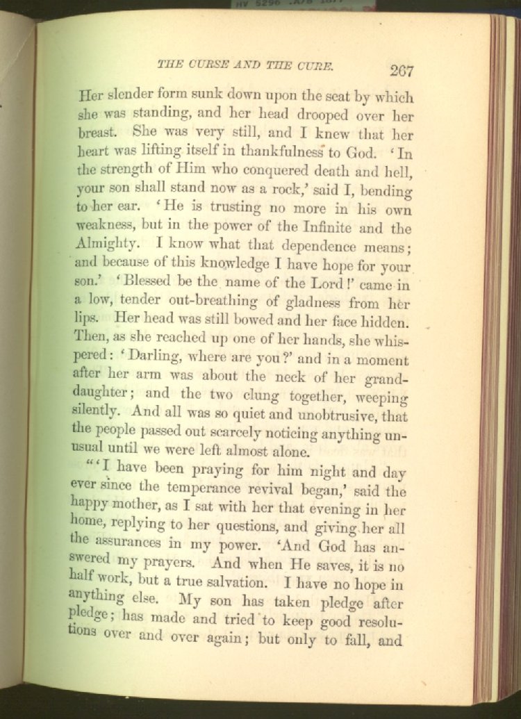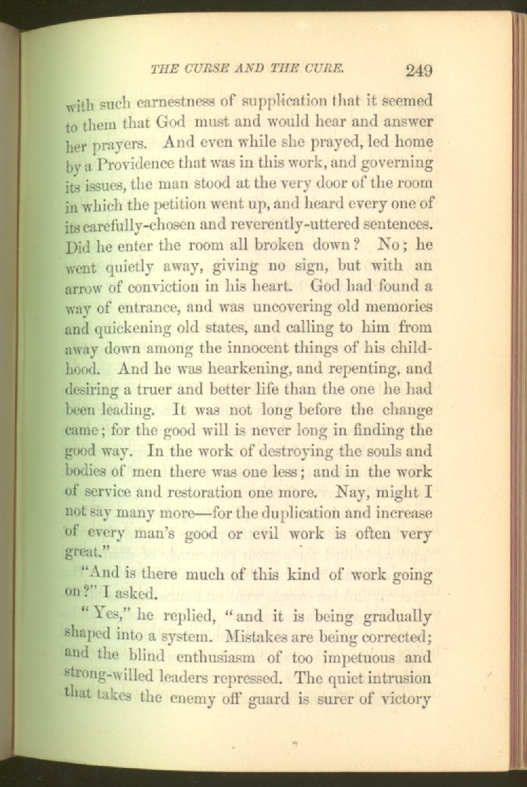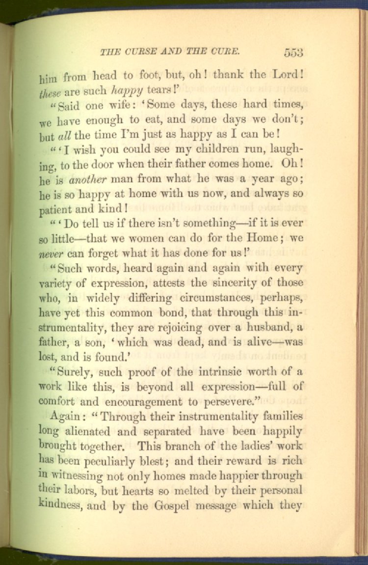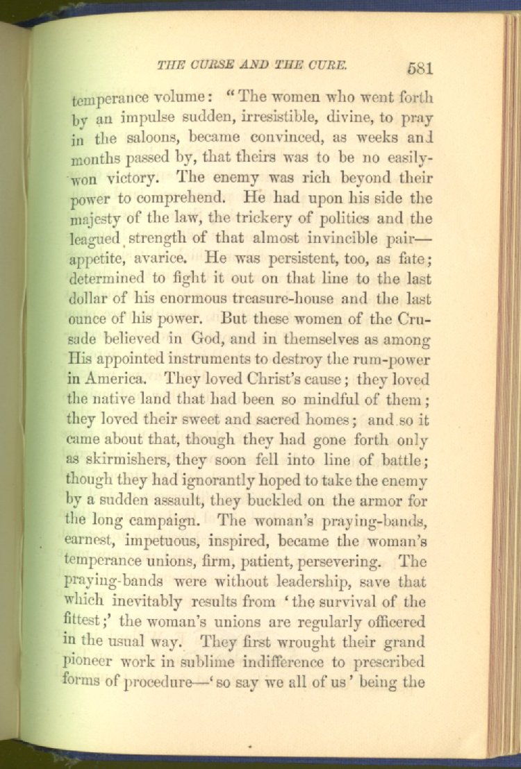 In treating of the means of reformation and cure, the author shows what has been done and is now doing in Inebriate Asylums and Reformatory Homes; and also through what is known as Gospel Temperance Work--giving, in this connection, a brief history of the Woman's Crusade, of The Woman's National Christian Temperance Union, and the establishment of Reform Clubs, Temperance Coffee-Houses and Friendly Inns.