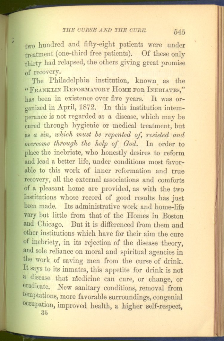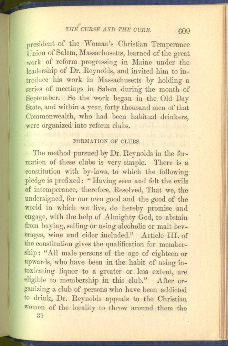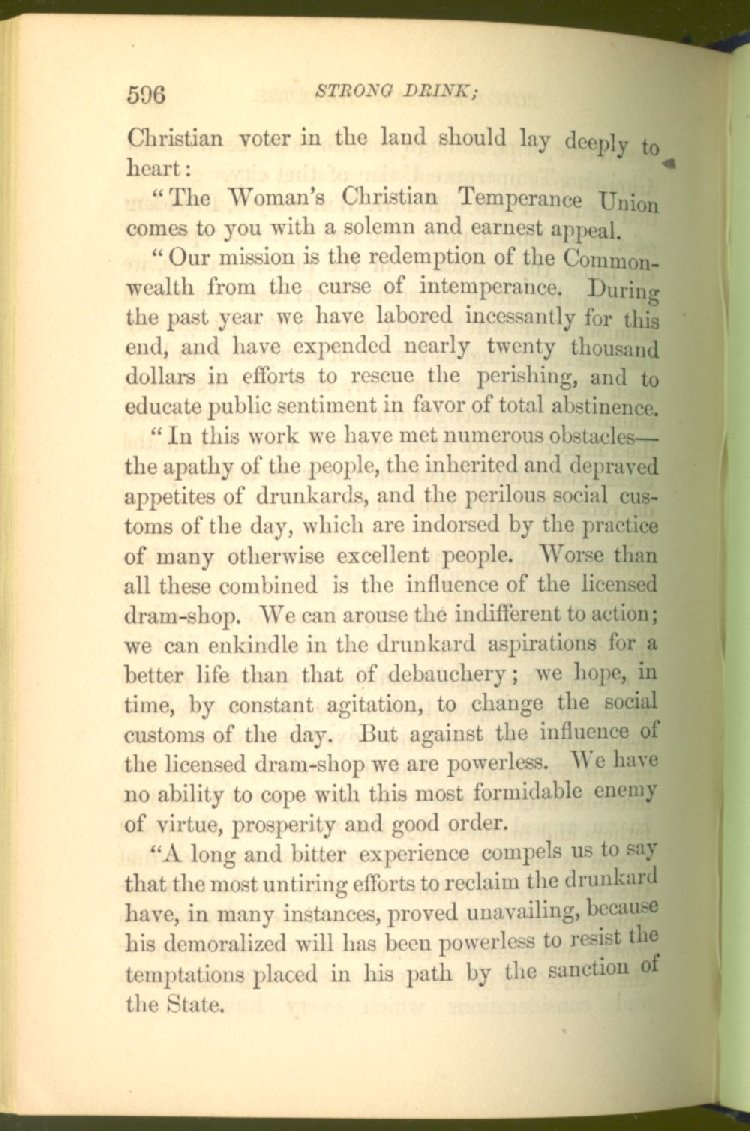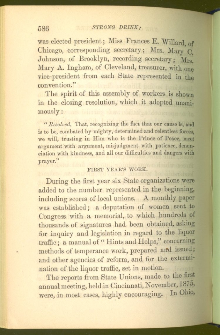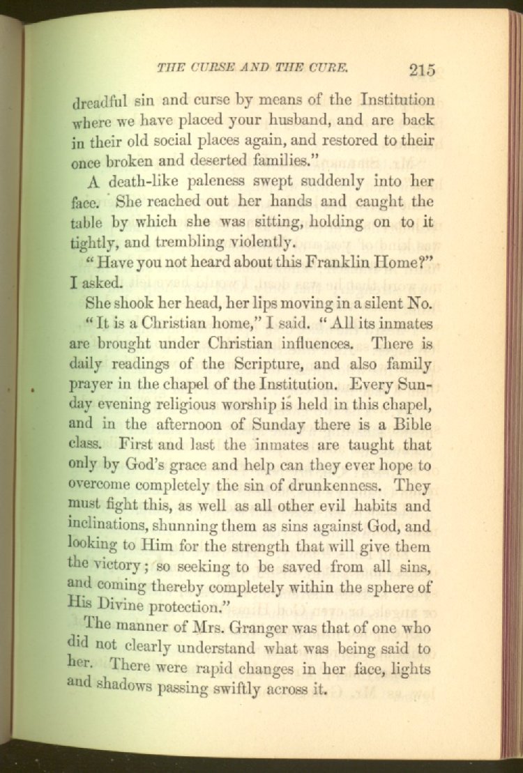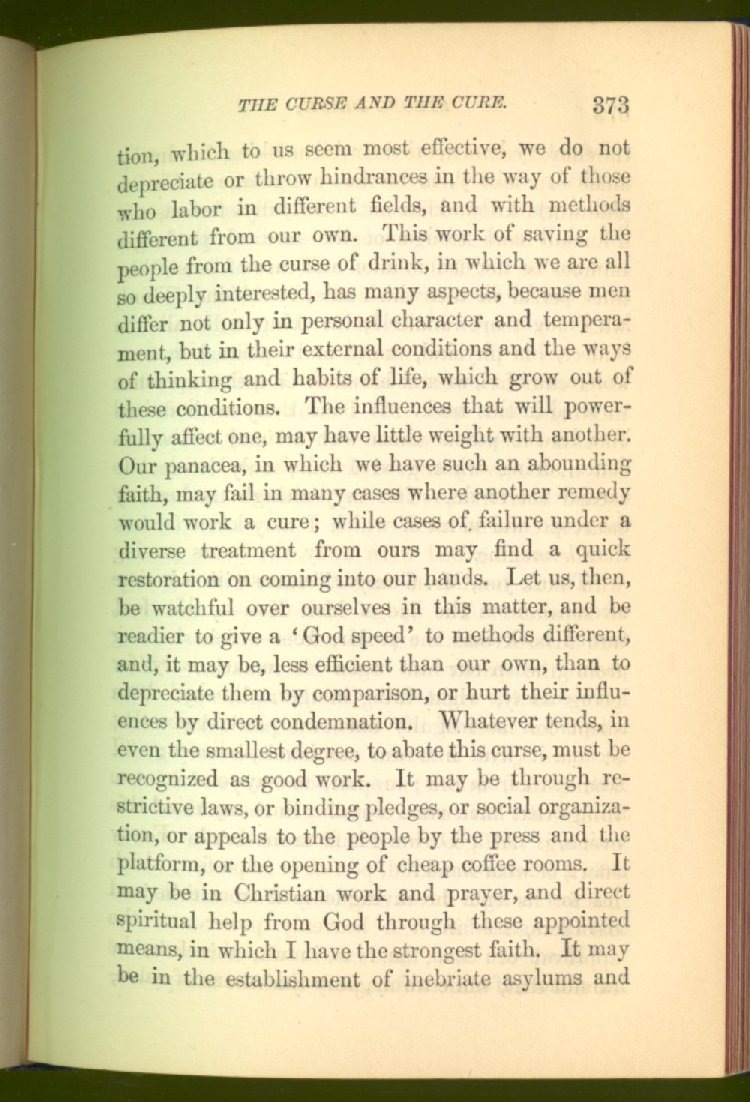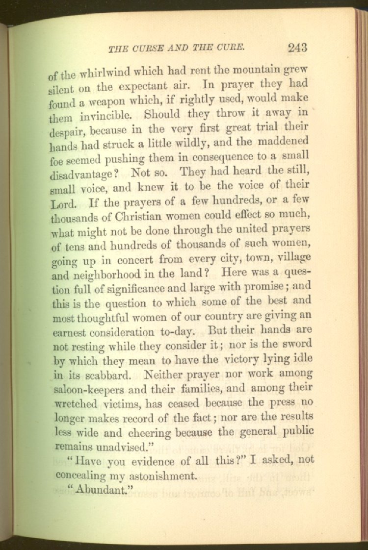 In treating of the means of reformation and cure, the author shows what has been done and is now doing in Inebriate Asylums and Reformatory Homes; and also through what is known as Gospel Temperance Work--giving, in this connection, a brief history of the Woman's Crusade, of The Woman's National Christian Temperance Union, and the establishment of Reform Clubs, Temperance Coffee-Houses and Friendly Inns.
