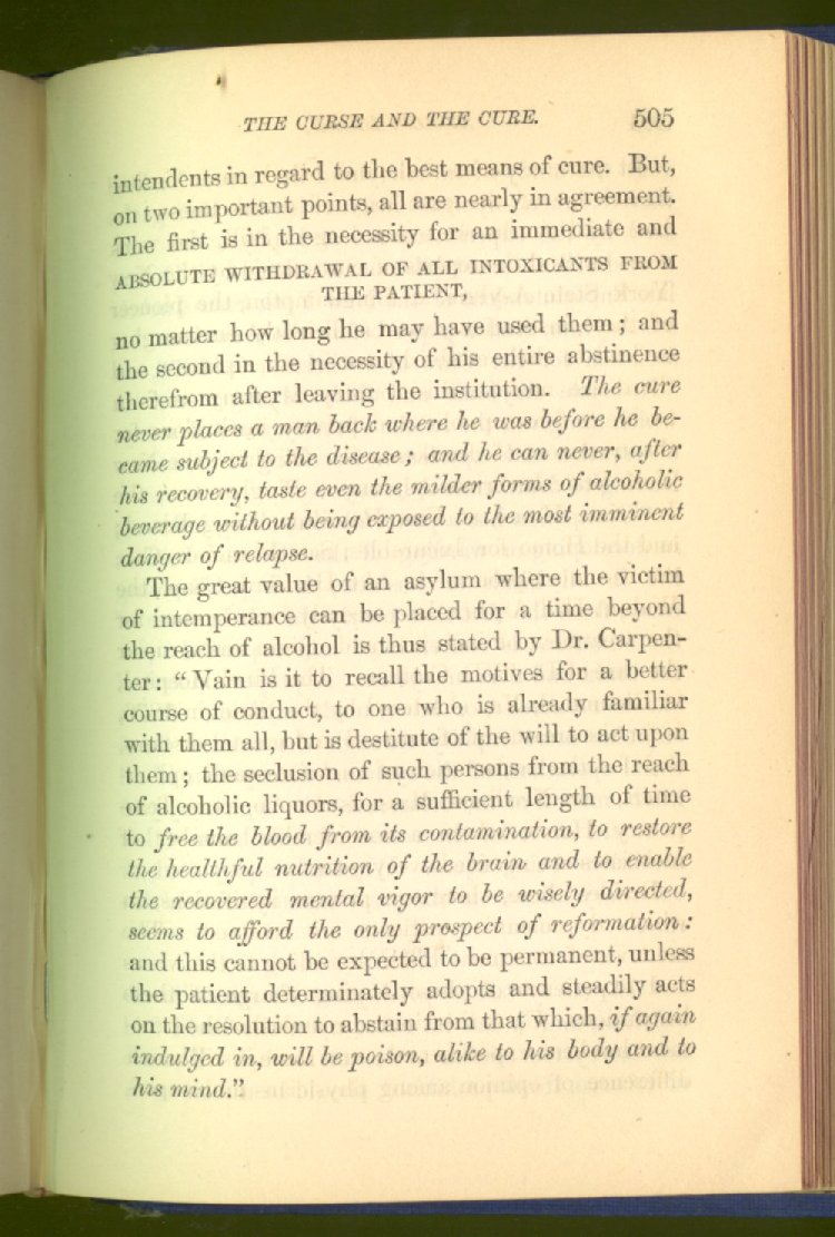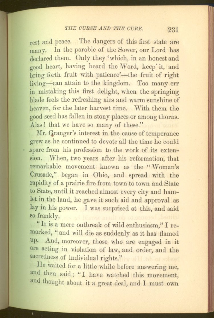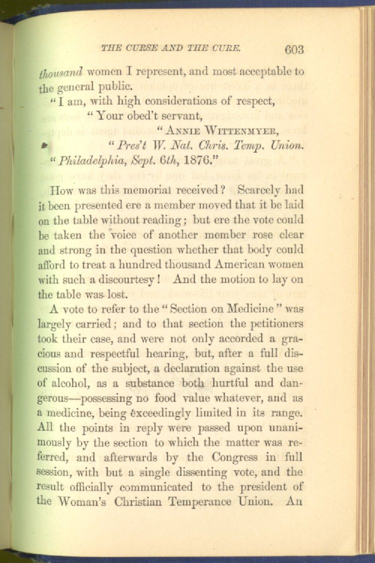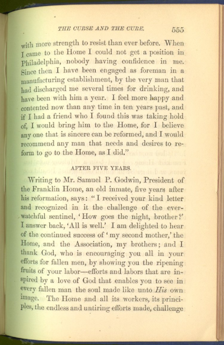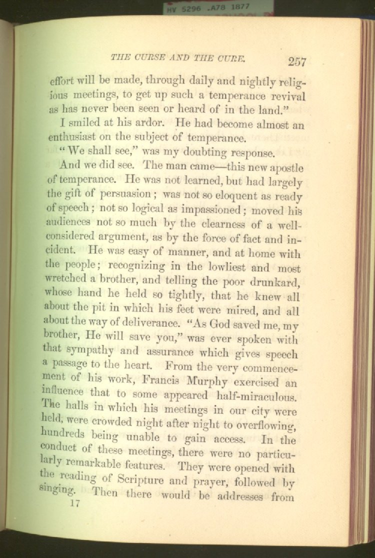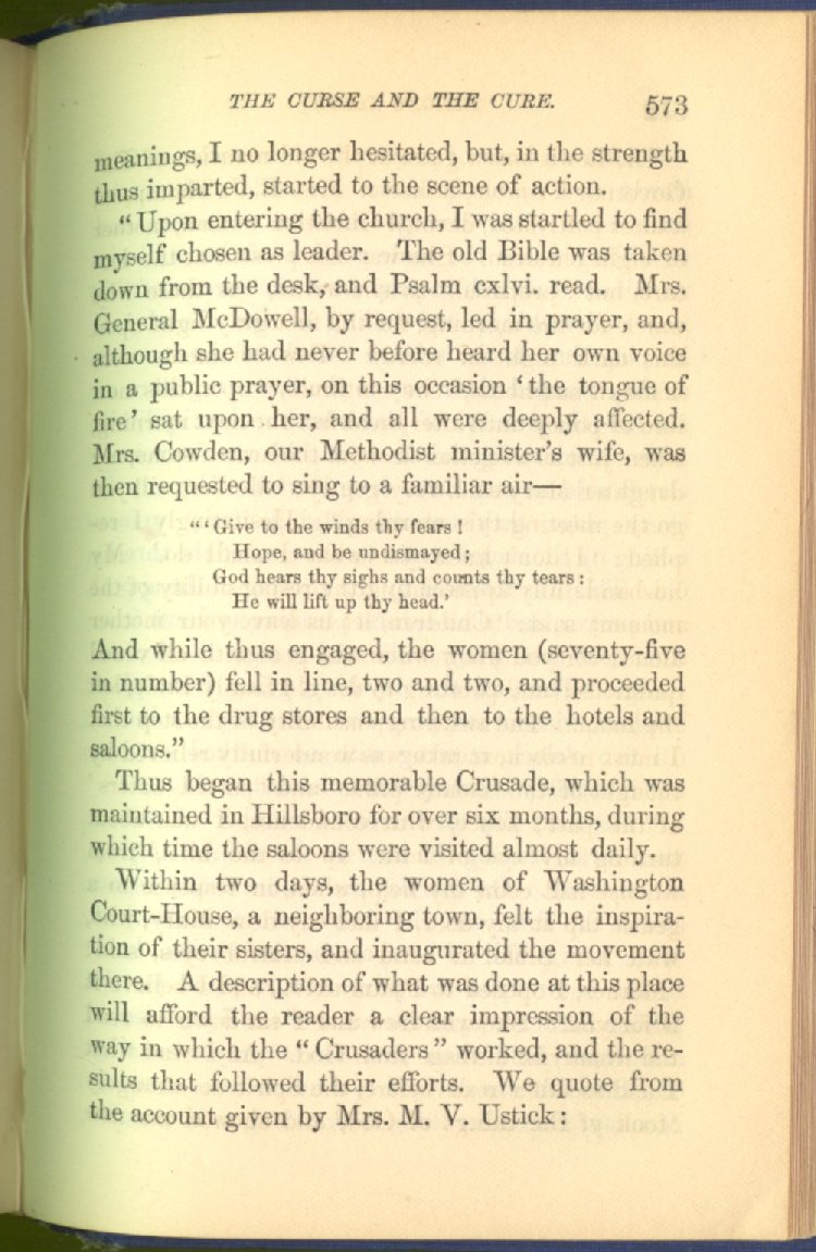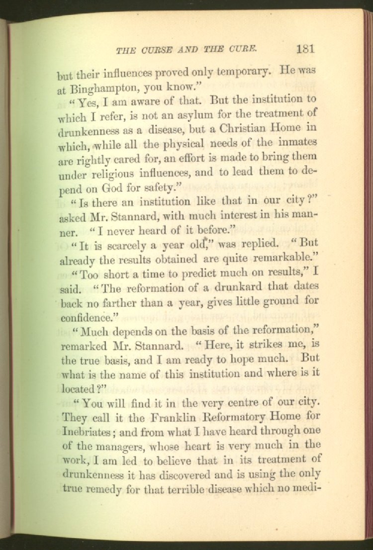 In treating of the means of reformation and cure, the author shows what has been done and is now doing in Inebriate Asylums and Reformatory Homes; and also through what is known as Gospel Temperance Work--giving, in this connection, a brief history of the Woman's Crusade, of The Woman's National Christian Temperance Union, and the establishment of Reform Clubs, Temperance Coffee-Houses and Friendly Inns.