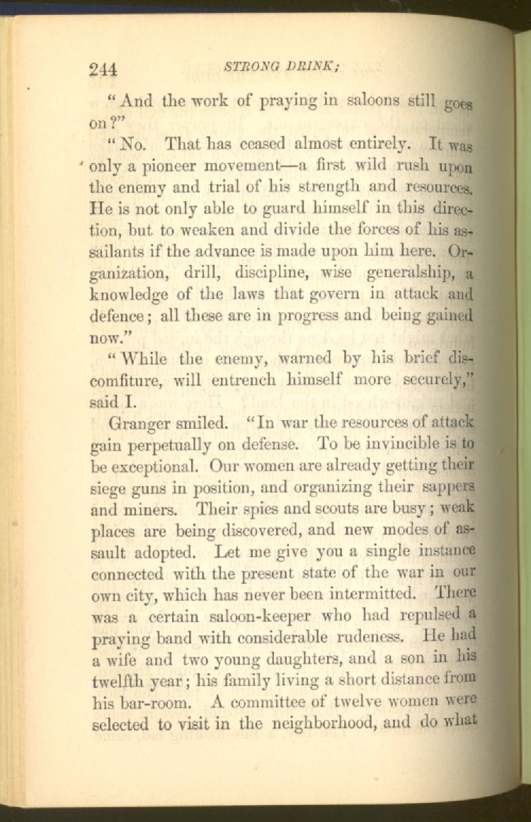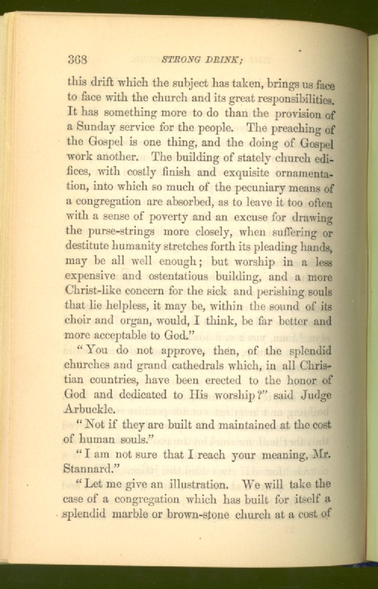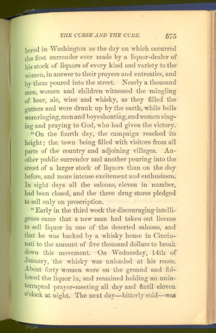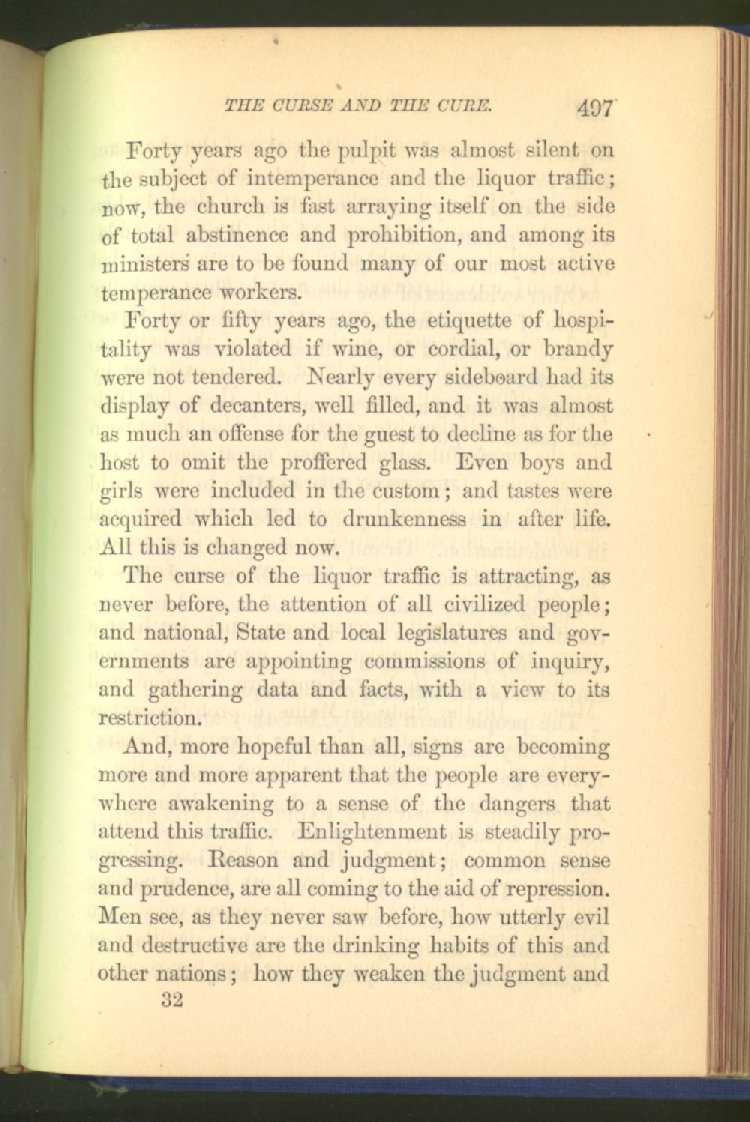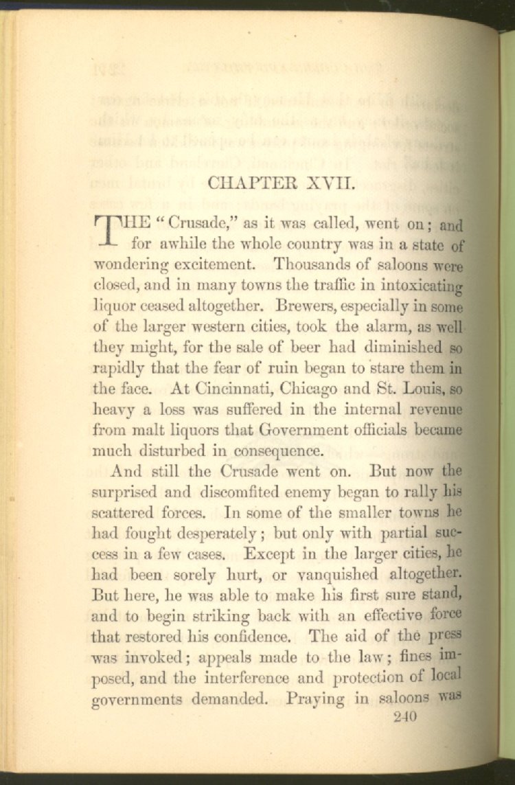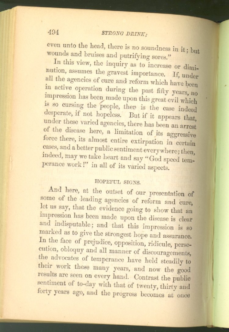 Everywhere throughout the State the results of this way of life was to be seen--in the general poverty of the people, and in the shabbiness of all their surroundings. But some persons conceived the idea that all this evil was not necessary and inevitable; that it came from the liquor traffic, which might be prohibited and suppressed, as lottery-tickets, gambling-houses and impure books and pictures had already been. And they devoted themselves constantly and industriously to the work of correcting the public opinion of the people as to the liquor traffic by demonstrating to them that this trade was in deadly hostility to every interest of the State, while no good came from it, nor could come from it, to State or people.
