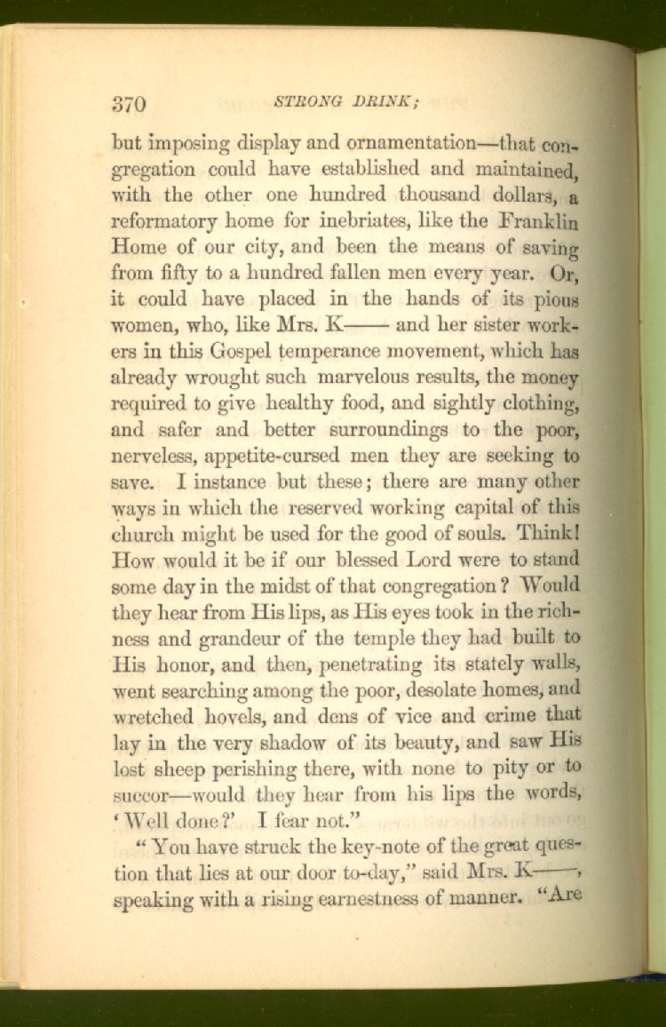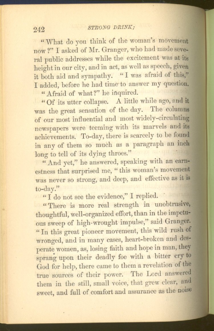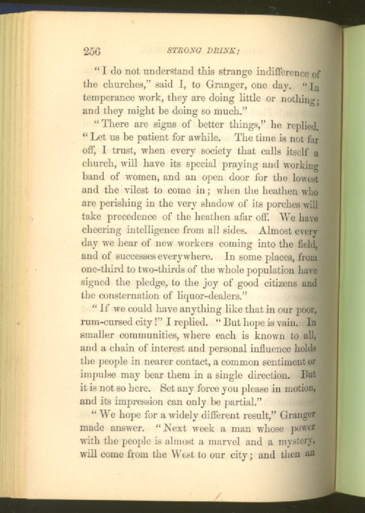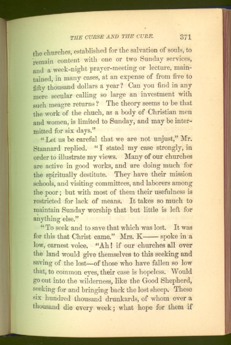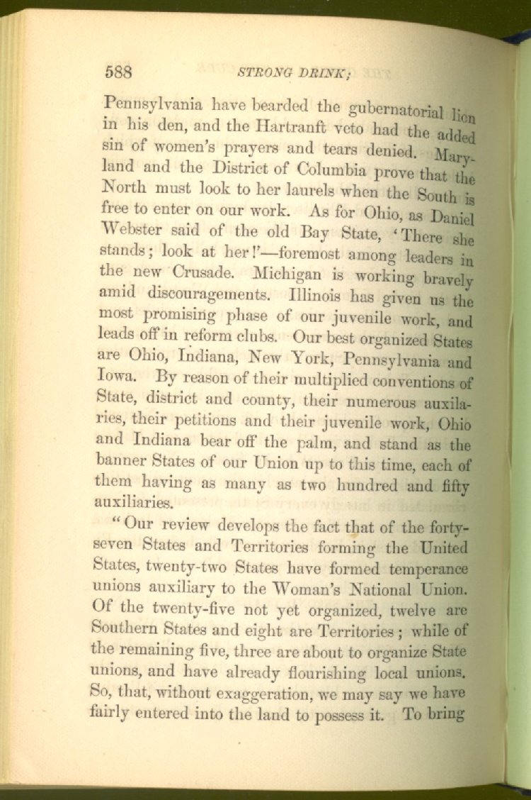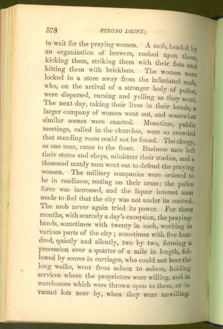 Everywhere throughout the State the results of this way of life was to be seen--in the general poverty of the people, and in the shabbiness of all their surroundings. But some persons conceived the idea that all this evil was not necessary and inevitable; that it came from the liquor traffic, which might be prohibited and suppressed, as lottery-tickets, gambling-houses and impure books and pictures had already been. And they devoted themselves constantly and industriously to the work of correcting the public opinion of the people as to the liquor traffic by demonstrating to them that this trade was in deadly hostility to every interest of the State, while no good came from it, nor could come from it, to State or people.