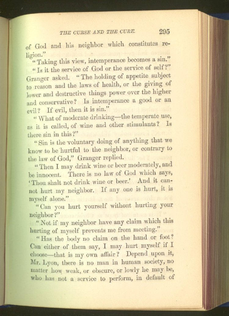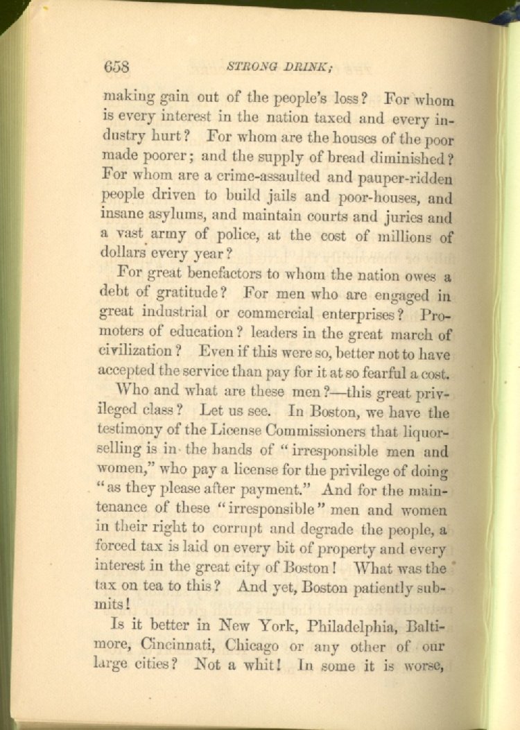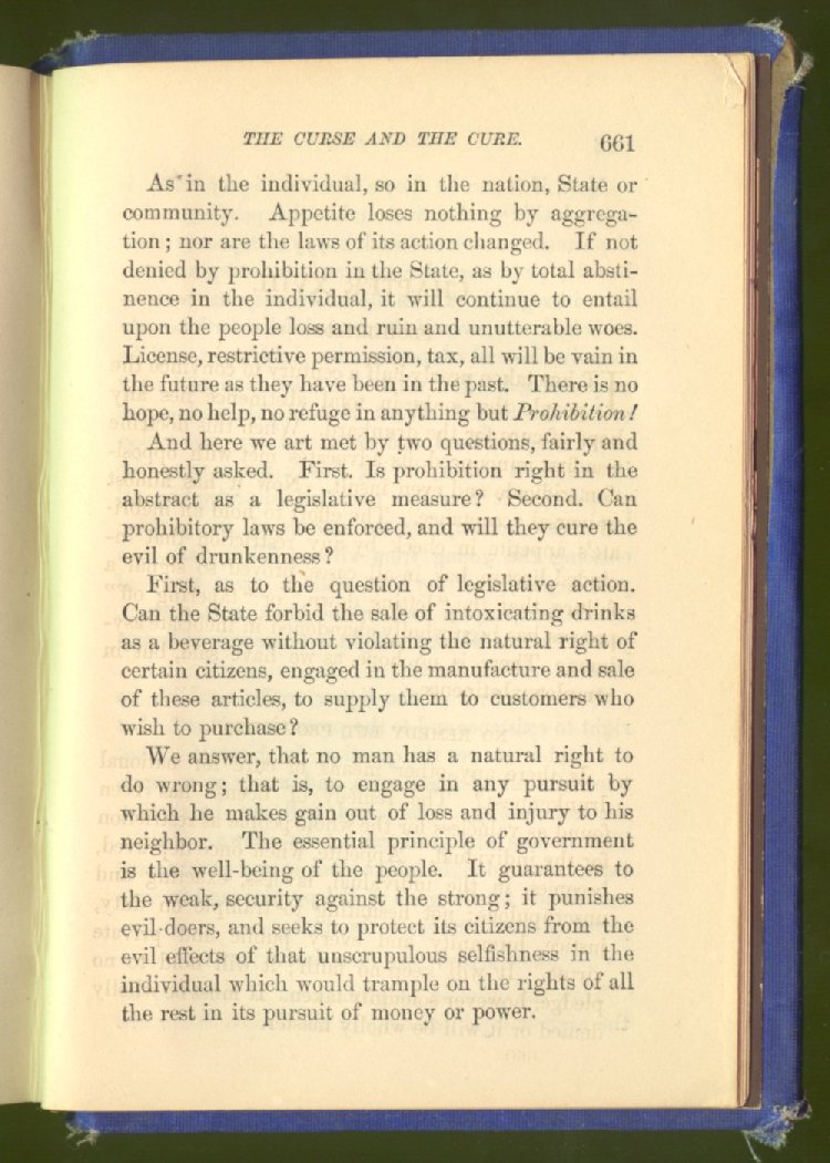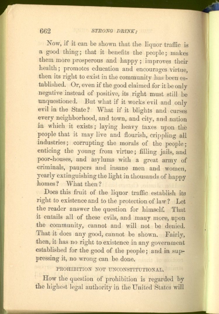 sale of intoxicating drinks, because this sale not only hurts all other interests, but destroys the health and degrades the morals of the people, has been fully shown.