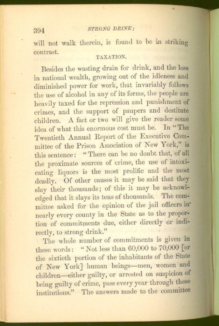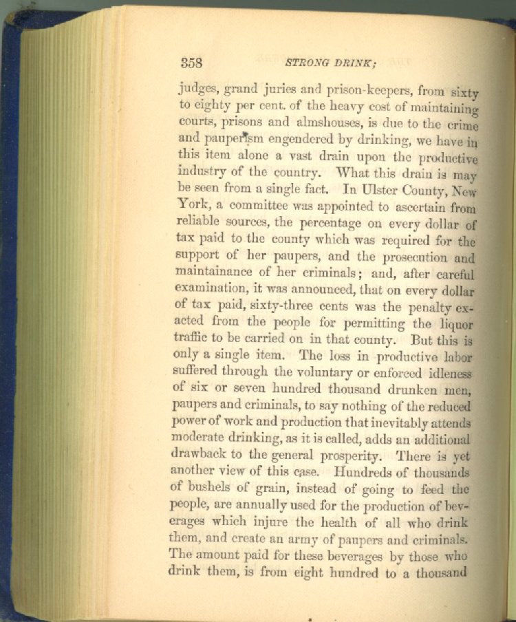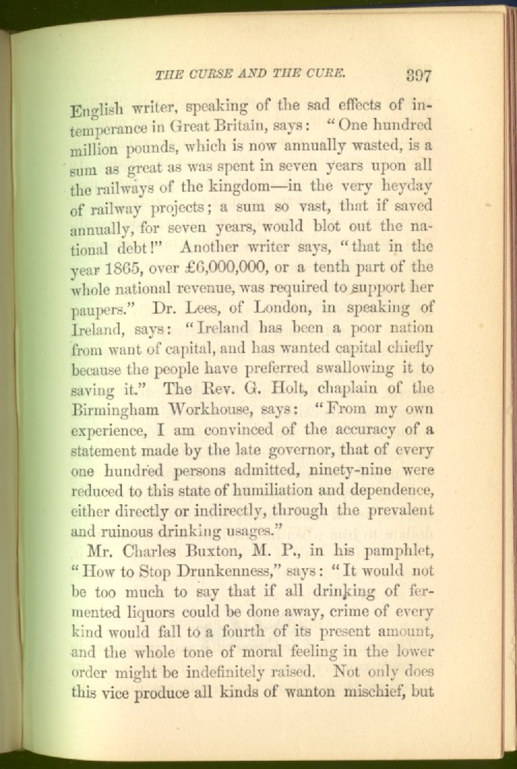In the county of Tyrone, Ireland, no drinking house is allowed. In 1870, Right Hon. Claude Hamilton said: "At present there is not a single policeman in that district. The poor-rates are half what they