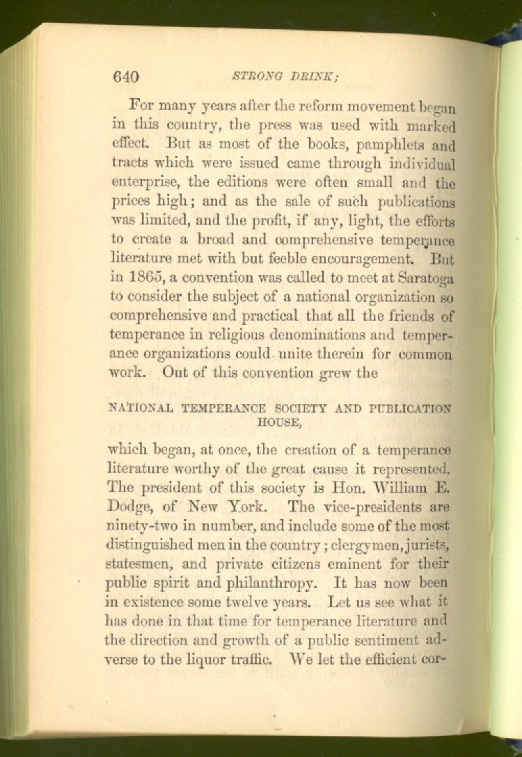 This educational work was carried on persistently for years; meetings were held by these persons in every little country-church and town-house, and in every little wayside school-house, where the farmers and their wives and children assembled at the call of these missionaries, to listen to their burning denunciation of the liquor traffic, which lived only by spreading poverty, pauperism, suffering, insanity, crime and premature death broadcast over the State. The result of this teaching was, that the public opinion of the State became thoroughly changed as to the character of the liquor traffic and its relation to the public prosperity and welfare.